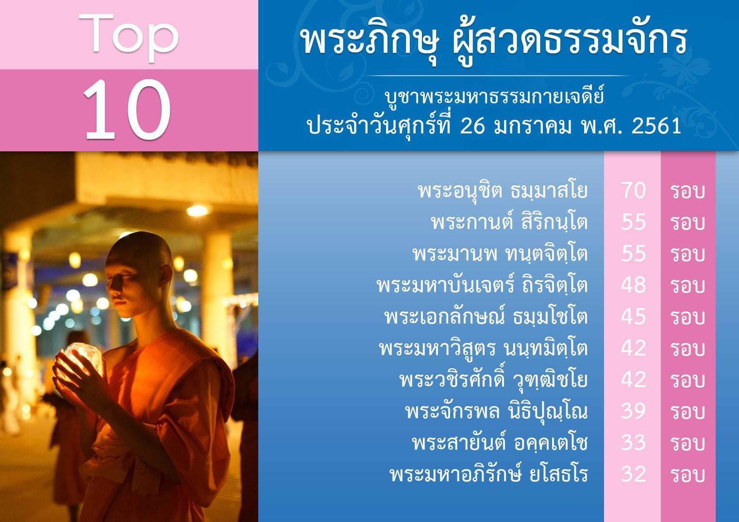 อนุโมทนาบุญกับทุกท่านนะ (ผู้สวดธัมมจักกัปปวัตตนสูตร เมื่อวันศุกร์ที่ 26 มกราคม พ.ศ.2561) สาธุๆ เป้าต่อไป วันมหาปูชนียาจารย์ เสาร์ที่ 3 กุมภาพันธ์ พ.ศ. 2561 ด้วยตัวเลข 353,333,333 จบ ✌️✊️✊️✊️✊️✌️ สวดให้ถูกหลักวิชชา สวดด้วย >จิตที่เกษมจริงๆ >มีความสุข >มีความบริสุทธิ์ >ปลื้มทุกจบ เช็ดยอดสวดสดๆ ด้วยคอม http://mypapalove.net/dmk/v43 เช็คยอดสวดด้วยมือถือ http://mypapalove.net/dmk/mobile ส่งยอดจำนวนสวดธัมมจักกัปปวัตตนสูตร และ ส่งผลการปฏิบัติธรรม : http://www.forbrighterworld.com/ #สวดธัมมจักกัปปวัตตนสูตร