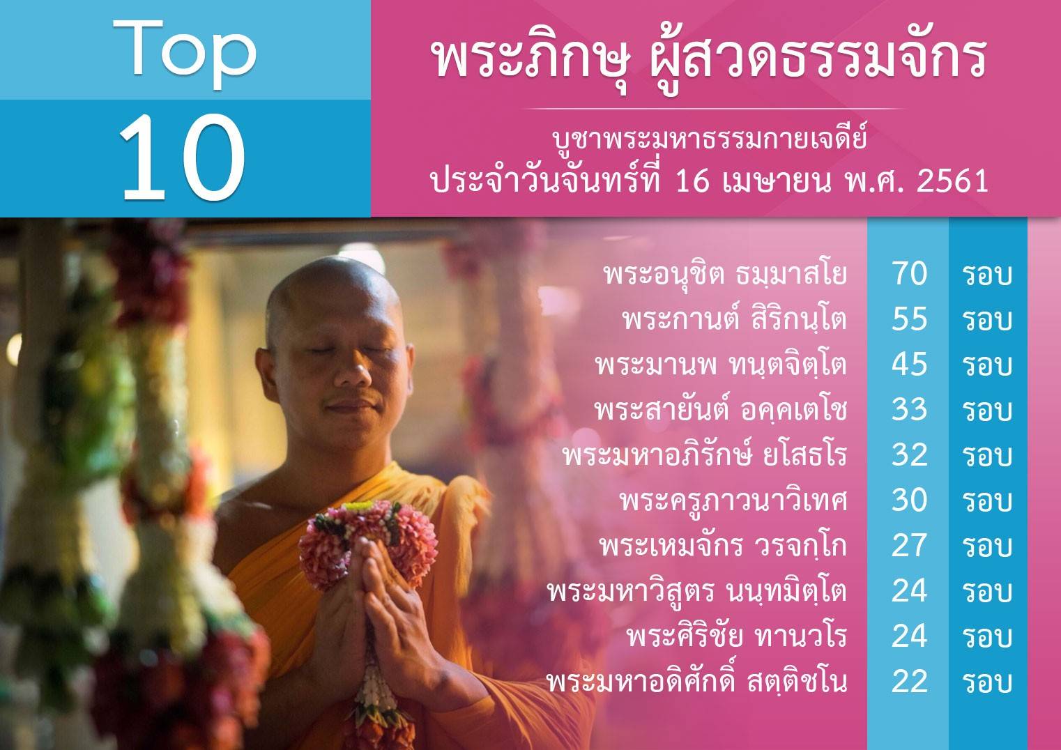 ยอดสวดเมื่อวันจันทร์ที่ 16 เม.ย. พ.ศ.2561 สาธุ สาธุ วันคุ้มครองโลก – Earth Day 22 เมษายน 2561 ณ วัดพระธรรมกาย ------------------- ภาคเช้า : พิธีตักบาตร ภาคสาย : ปฏิบัติธรรม ร่วมพิธีบูชาข้าวพระ ภาคบ่าย : พิธีทอดผ้าป่าบำรุงวัด ครั้งที่ 1/2561 ภาคค่ำ : พิธีย่ำระฆังทองระฆังธรรม ฉลองชัย ชิตัง เม สวดธรรมจักร วันคุ้มครองโลก วันอาทิตย์ที่ 22 เมษายน เป้าของเราคือ 466,666,666 จบ อีก 2 วัน ✌️✊️✊️✊️✊️✌️ สวดให้ถูกหลักวิชชา สวดด้วย >จิตที่เกษมจริงๆ >มีความสุข >มีความบริสุทธิ์ >ปลื้มทุกจบ เช็ดยอดสวดสดๆ ด้วยคอม http://mypapalove.net/dmk/v43 เช็คยอดสวดด้วยมือถือ http://mypapalove.net/dmk/mobile ส่งยอดจำนวนสวดธัมมจักกัปปวัตตนสูตร และ ส่งผลการปฏิบัติธรรม : http://www.forbrighterworld.com/ #สวดธัมมจักกัปปวัตตนสูตร