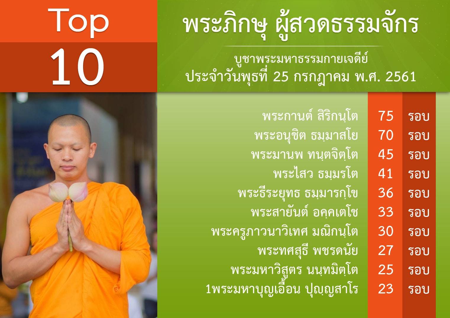 อนุโมทนาบุญยอดสวด เมื่อวันพุธที่ 25 พฤหัสบดีที่ 26 และศุกร์ที่ 27 ก.ค . พ.ศ.2561 สาธุ สาธุ 🌝 ฉลองชัย!! วันธรรมชัย 27 สิงหาคม พ.ศ. 2561 สวดธรรมจักรให้ถึง 662,000,000 จบ “!!! • สวดธรรมจักร สำคัญ มากนะ บุญเกิดขึ้นทุกอักขระเลย ไม่ใช่ แค่ บอ-สระอุ-ญ แต่...กระแสธารแห่งบุญ เกิดขึ้นจริงๆ ในทุกอักขระที่เกิดจาก การสวดธรรมจักร ด้วยจิตที่เลื่อมใส สวดด้วยความเคารพ ที่ผ่านมาเราสวดแล้ว ถึง 500 กว่าล้านจบ บุญจะเกิดขึ้นเยอะ ขนาดไหน • เพราะฉะนั้น ให้ตั้งใจ กันให้ดีนะ สวดให้ถูกหลักวิชชา สวดด้วยความปลื้ม มีความสุข ความบริสุทธิ์ มีจิตเกษม และไปให้ถึงเป้า ~~~~~•••~~~~~ Cr : หิ่งห้อยส่งข่าว (๒๖ พ.ค. ๒๕๖๑ ) ✌️✊️✊️✊️✊️✌️ • ให้มาสวดธรรมจักร หน้า”พระมหาธรรมกายเจดีย์ พระมหาเจดีย์พระพุทธเจ้าล้านพระองค์” มากันให้เยอะๆ เพราะที่ตรงนี้สำคัญมากๆๆๆ ~~~~~•••~~~~~ Cr : หิ่งห้อยส่งข่าว ( 9/6/61 ) สวดให้ถูกหลักวิชชา สวดด้วย >จิตที่เกษมจริงๆ >มีความสุข >มีความบริสุทธิ์ >ปลื้มทุกจบ เช็ดยอดสวดสดๆ ด้วยคอม http://mypapalove.net/dmk/v43 เช็คยอดสวดด้วยมือถือ http://mypapalove.net/dmk/mobile ส่งยอดจำนวนสวดธัมมจักกัปปวัตตนสูตร และ ส่งผลการปฏิบัติธรรม : http://www.forbrighterworld.com/ ปล.!!!>นับยอดสวดเพื่อจัดอันดับ จากการใส่ยอดสวด ท้่ายการบ้านตาอินตานา #สวดธัมมจักกัปปวัตตนสูตร 5